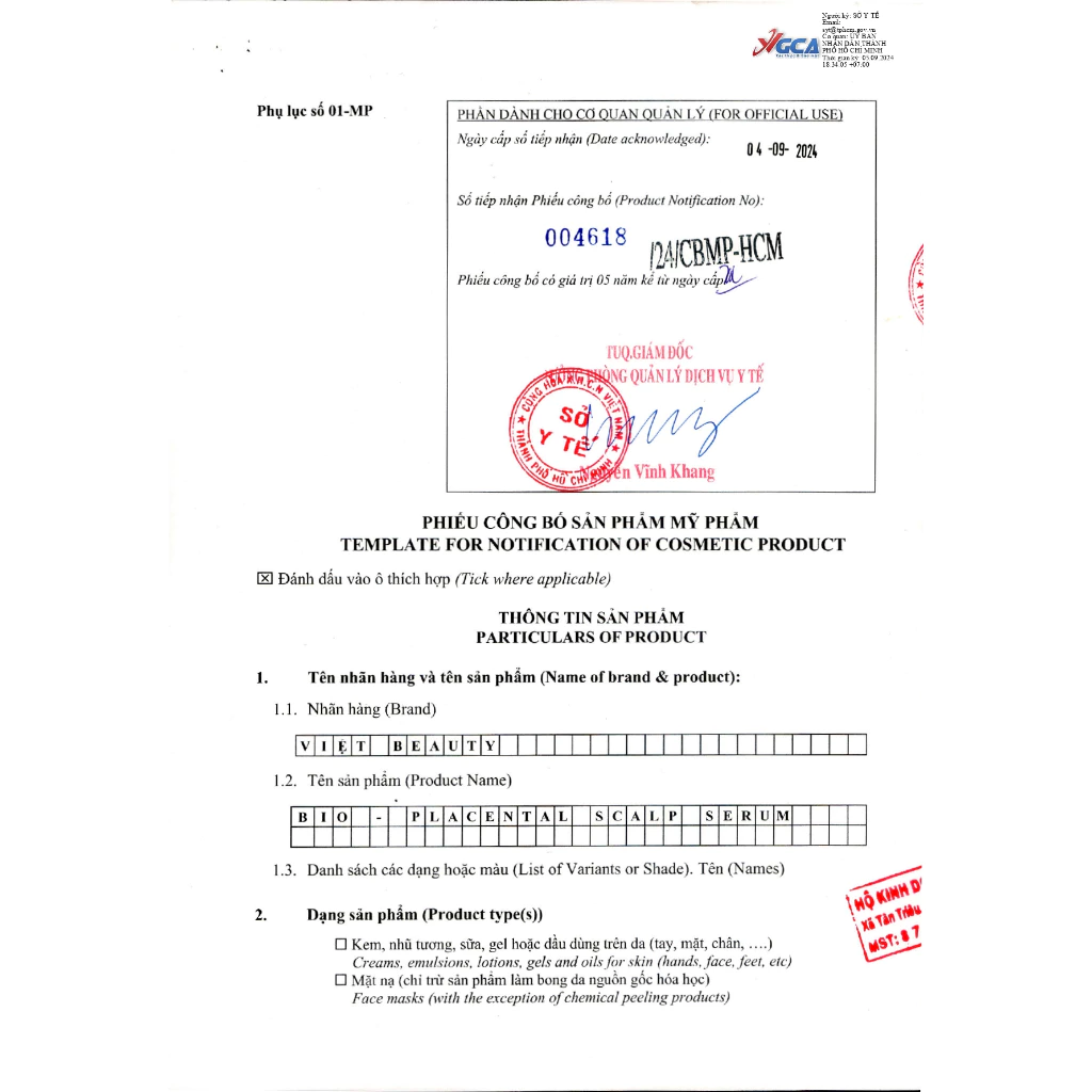 Bioplacental scalp serum contains many outstanding ingredients that provide comprehensive care from hair follicles to the scalp: