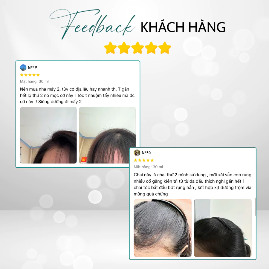 - Kích thích mọc tóc, nuôi dưỡng nang tóc tóc chắc khỏe, phục hồi tóc hư tổn