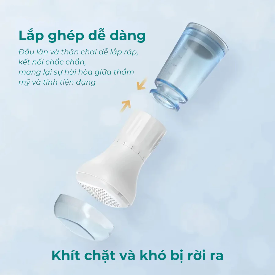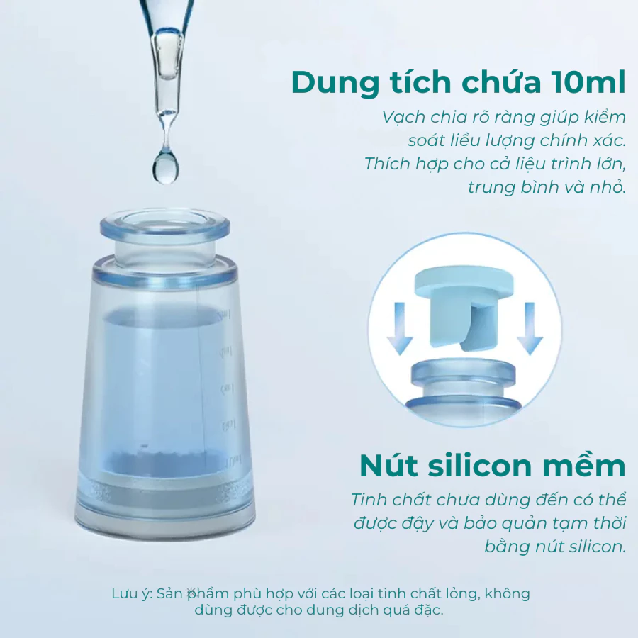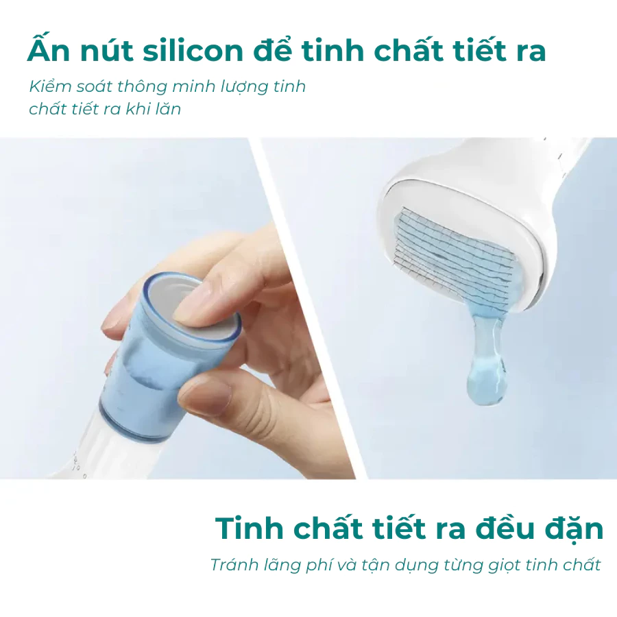 Bước 2: Đổ tinh chất vào lọ chứa, lắp chặt vào thân cây lăn kim.