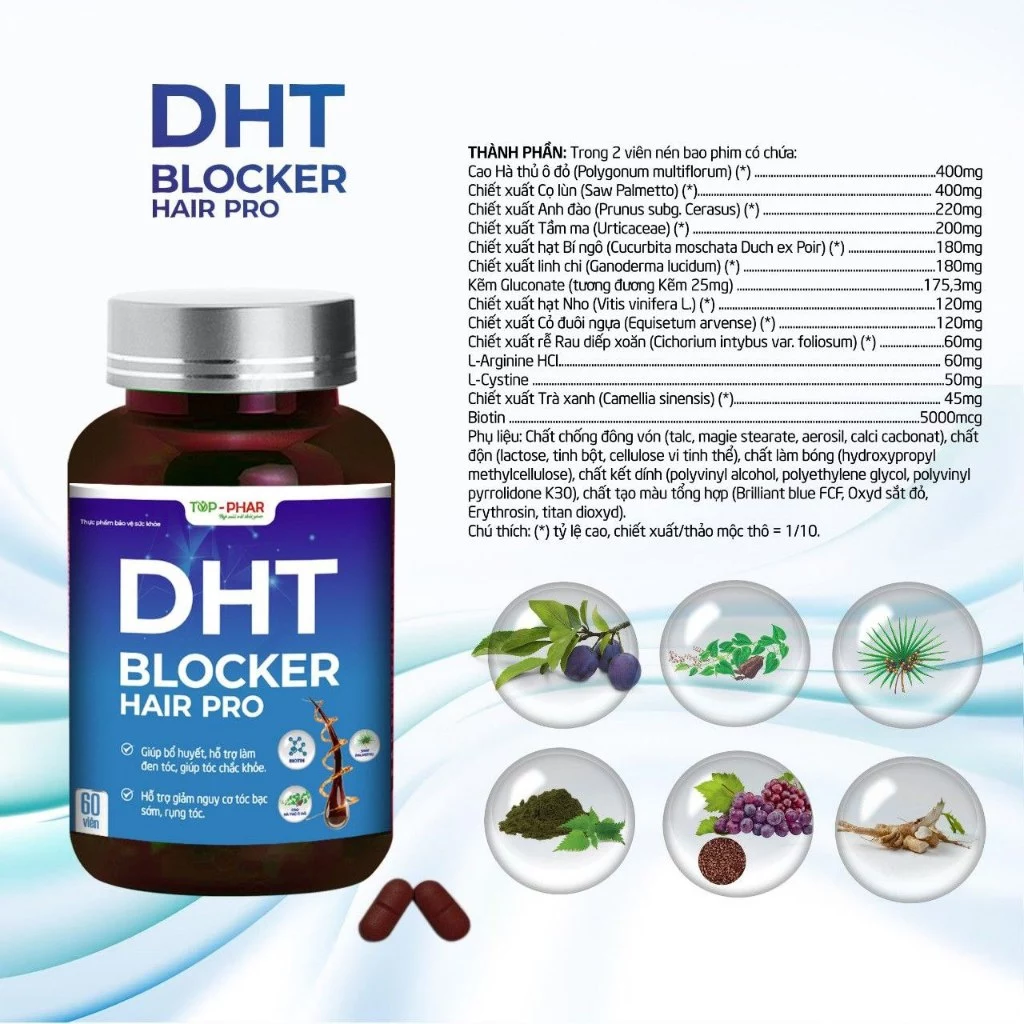 Viên uống DHT Blocker Hair Pro giúp giảm rụng tóc, hỗ trợ mọc tóc